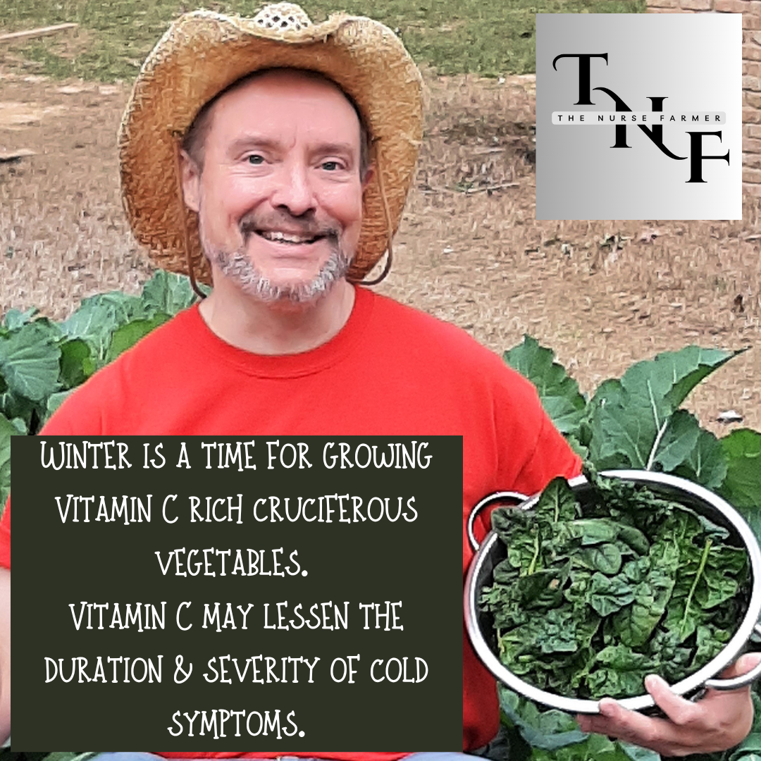 Just because it is winter doesn’t mean you can’t grow vegetables. There are many vegetables that grow during the cold months. Let’s take onions, for example. I planted a raised bed full of Red Creole Onion in November. Being cold hearty, they have survived several frosts and are still growing very well. Other vegetables that thrive well in the winter are cruciferous vegetables. Often referred to as ‘dark-green, leafy vegetables’, cruciferous vegetables are nutrient dense super-foods which include broccoli, Brussels sprouts, cabbage, cauliflower, collards, and turnips. Instead of growing from seed this year, I took a short-cut and bought several six-packs of dark-green leafy plants. I transplanted each of them into individual large pots on my back porch. They are all thriving very well. Another reason to grow cruciferous vegetables during the winter is that most cruciferous vegetables are good sources of Vitamin C. Evidence shows that regular and consistent consumption of Vitamin C prior to catching the cold may help reduce the duration of your cold symptoms.
